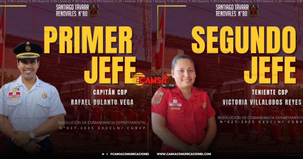 La XXV Comandancia Departamental Lima Norte del Cuerpo General de Bomberos Voluntarios del Perú, mediante la Resolución N.° 027-2025-XXVCDLN-CGBVP, oficializó el pasado 25 de agosto la designación de los nuevos jefes de la Compañía de Bomberos “Santiago Távara Renovales” N.° 80 de Chancay.