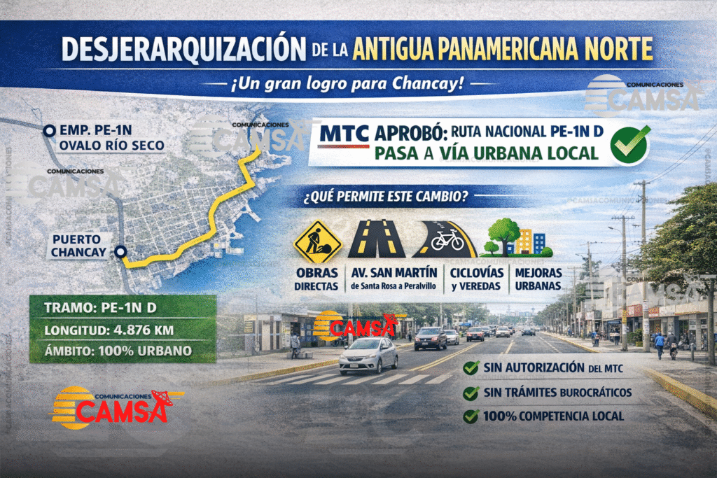 La desjerarquización de la antigua Panamericana Norte no es un trámite menor, sino una decisión técnica y legal que devuelve a Chancay el control total de su territorio urbano, elimina trabas burocráticas y habilita obras estratégicas largamente esperadas.