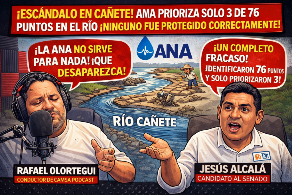 Cañete. Durante una entrevista en el programa CAMSA Comunicaciones Podcast, el candidato Jesús Alcalá Mateo lanzó severas críticas contra la Autoridad Nacional del Agua (ANA), señalando que se trata de una entidad que no viene aportando soluciones concretas para el desarrollo del agro en el país.