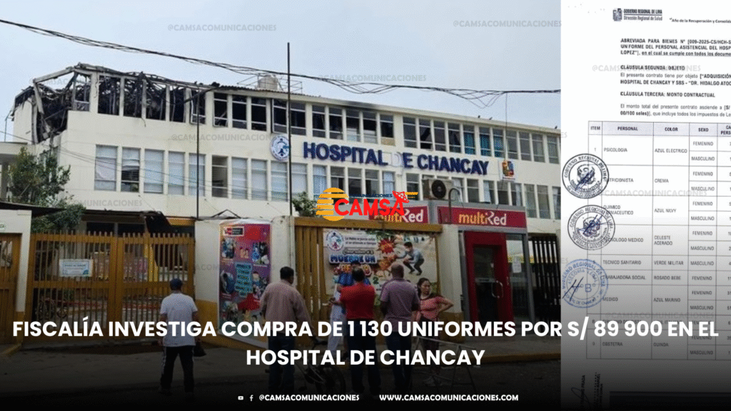 La Fiscalía Especializada en Delitos de Corrupción de Funcionarios de Huaura abrió una investigación preliminar contra cuatro funcionarios del Hospital de Chancay, tras denunciarse una compra sospechosa de pantalones y chaquetas para el personal asistencial por un valor de S/ 89 900.