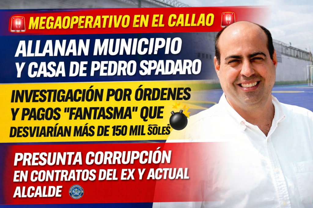 La madrugada de hoy, la Fiscalía junto a la Policía Nacional ejecutó un contundente megaoperativo que sacudió al Callao. El Ministerio Público allanó la sede de la Municipalidad del Callao y un total de 15 inmuebles, entre ellos las viviendas del exalcalde Pedro Spadaro y del actual burgomaestre César Pérez, en el marco de una investigación por presuntas irregularidades en el manejo de fondos públicos.
