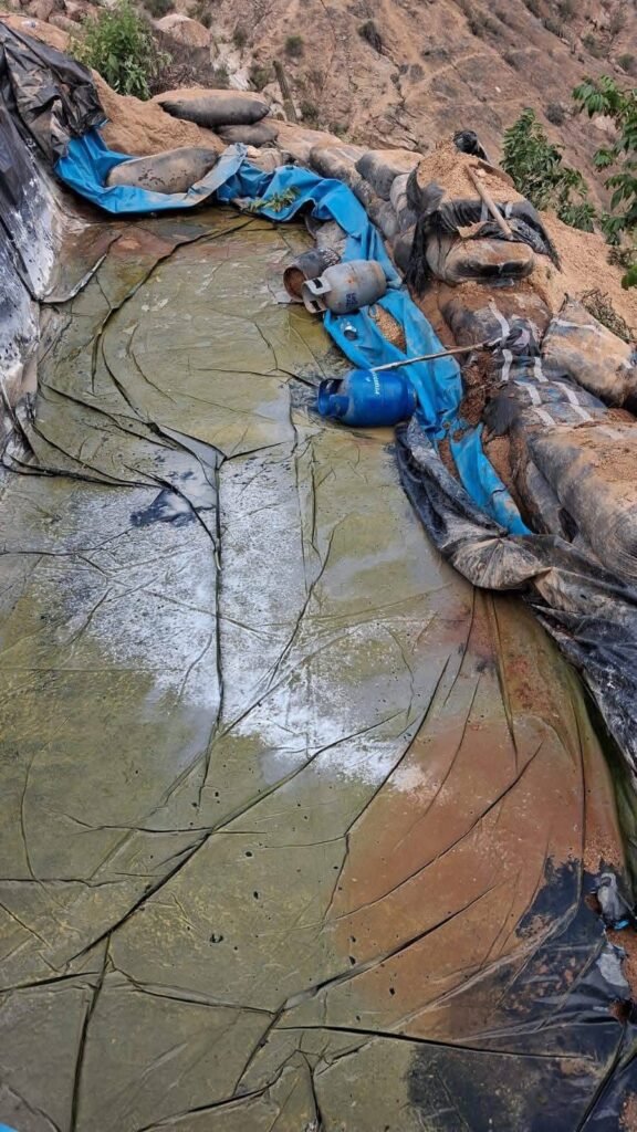 Asimismo, en la zona se halló una construcción rústica que funcionaba como punto de apoyo logístico para el mantenimiento de estos cultivos ilegales. En su interior se encontraron balones de gas, una cocina y una represa artesanal elaborada con sacos de tierra y plásticos de colores, evidenciando la organización detrás de esta actividad ilícita.