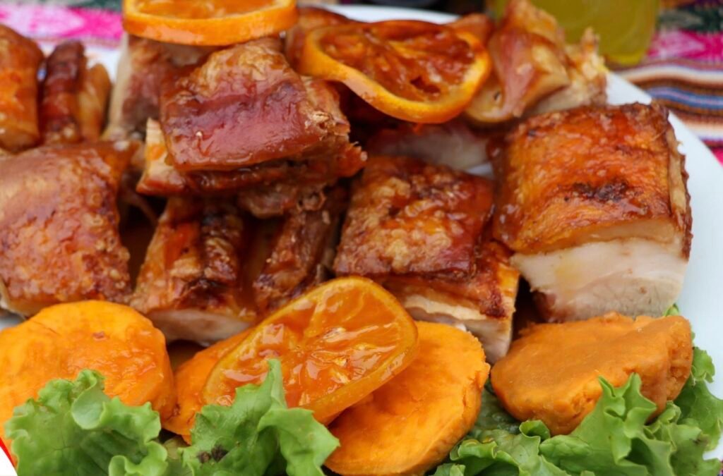 Durante los tres días de celebración, los asistentes podrán degustar una amplia variedad de platos típicos de la región y del país, teniendo como protagonista al chancho al palo, potaje emblemático que cada tercer domingo de octubre celebra su día nacional, según lo establecen la Ordenanza Municipal N.º 014-2013-MPH, la Ordenanza Regional N.º 010-2014-CR-GRL y la Resolución Ministerial N.º 0336-2023-Midagri.